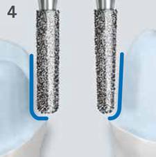 5.避免出现刃状肩台、飞边、或羽状肩台。 在使用柱状/锥状圆头的车针时特别注意:预备深度不得超过最大直径的一半。