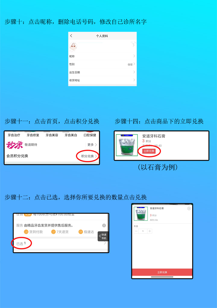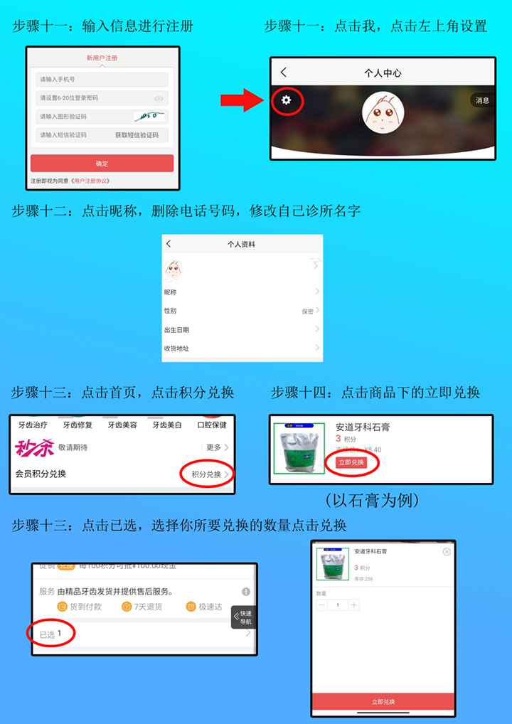 精品牙齿商城安卓手机注册及兑换商品操作步骤